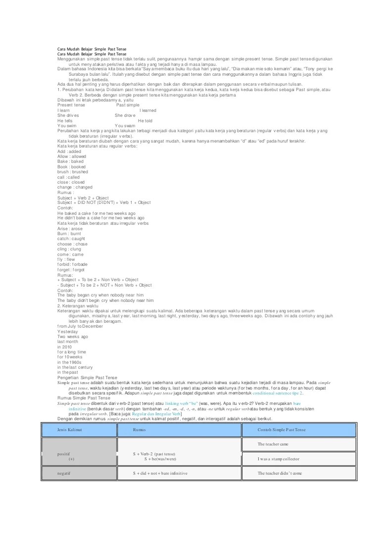 I am here now, i was there yesterday, and i have been there last week. Sedangkan untuk irregular verbs, bentuk kata kerja keduanya sangatlah berbeda karena mengandung 'to be' di dalamnya, contoh: Kata kerja kedua dibentuk dari verb . Kata kerja seperti ini disebut dengan irregular verb. Jika dicermati dengan saksama, kalimat simple past tense menggunakan kata keterangan waktu dan kata.