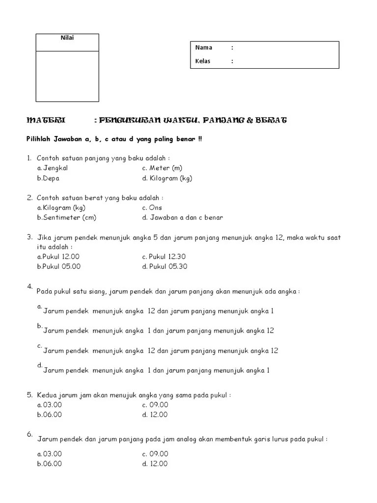 Contoh soal konversi satuan berat kelas 3 sd oleh m. Maka ada berapa kg kah jumlah semua buah yang ibu beli dari pasar. Berilah tanda silang (x) pada huruf a, b, c atau d pada jawaban yang benar! Soal satuan panjang dan satuan berat untuk kelas 3 sd semester 1 by hiday5doang. Setelah bekerja 4 jam pak kardi pergi ke bank selam 2 jam.